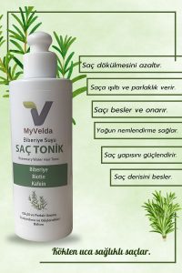Biberiye suyu bazlı özel formülüyle geliştirilen myVelda Saç Bakım Toniği , saç derisini canlandırır,;