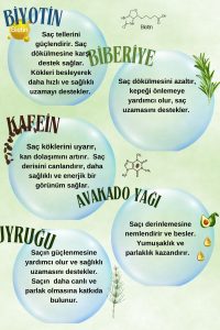 • Biberiye Suyu: Saç derisinde dolaşımı destekler, uzamayı teşvik eder.;